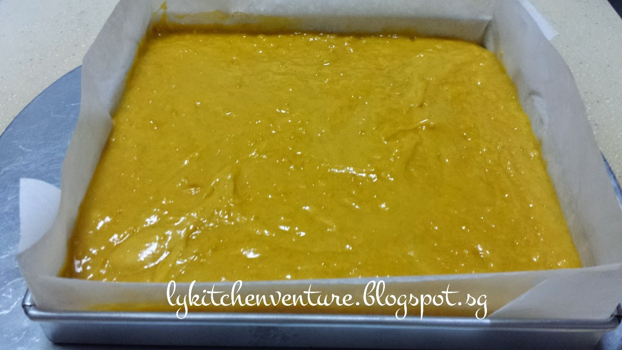 6. Pour batter into the prepared pan and bake in preheated oven at 180C for 30 minutes.