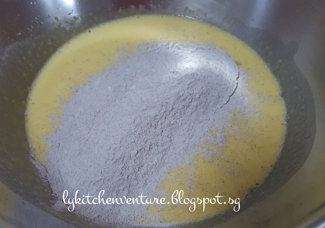 I know my hubby will find this cake interesting since Bubur Hitam is his favourite local dessert while custard is something he loves to bits. True enough, his face literally lit up after the first bite and I knew I've hit spot on!